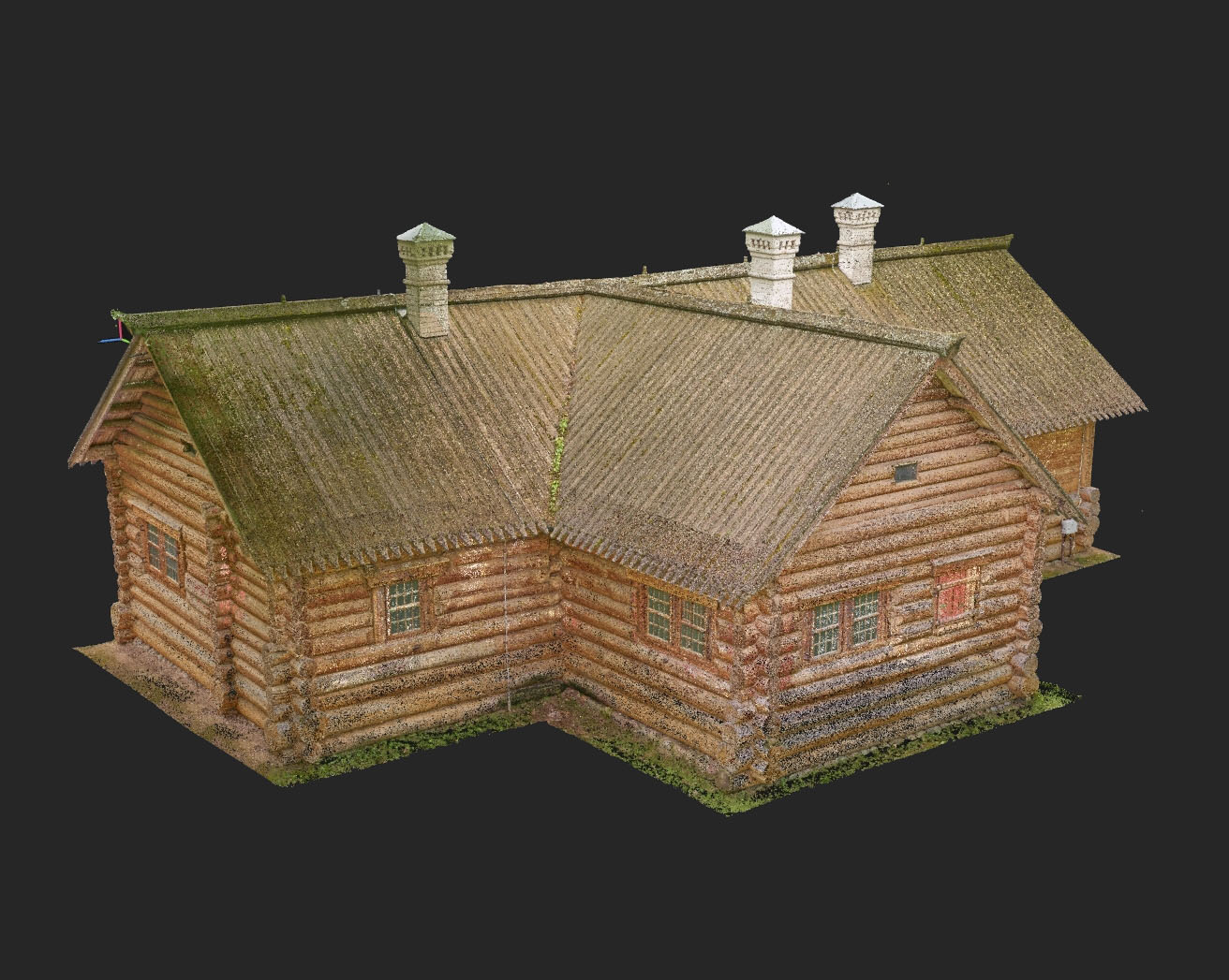 Мы применили лазерное сканирование для сбора данных о геометрии здания с высокой точностью. Для текстурирования модели было собрано более 20 тысяч фотографий. Эти данные были обработаны с использованием ПО RealityCapture, что позволило объединить их в высокодетализированную модель всех поверхностей объекта, включая фасады, кровлю и элементы интерьера.