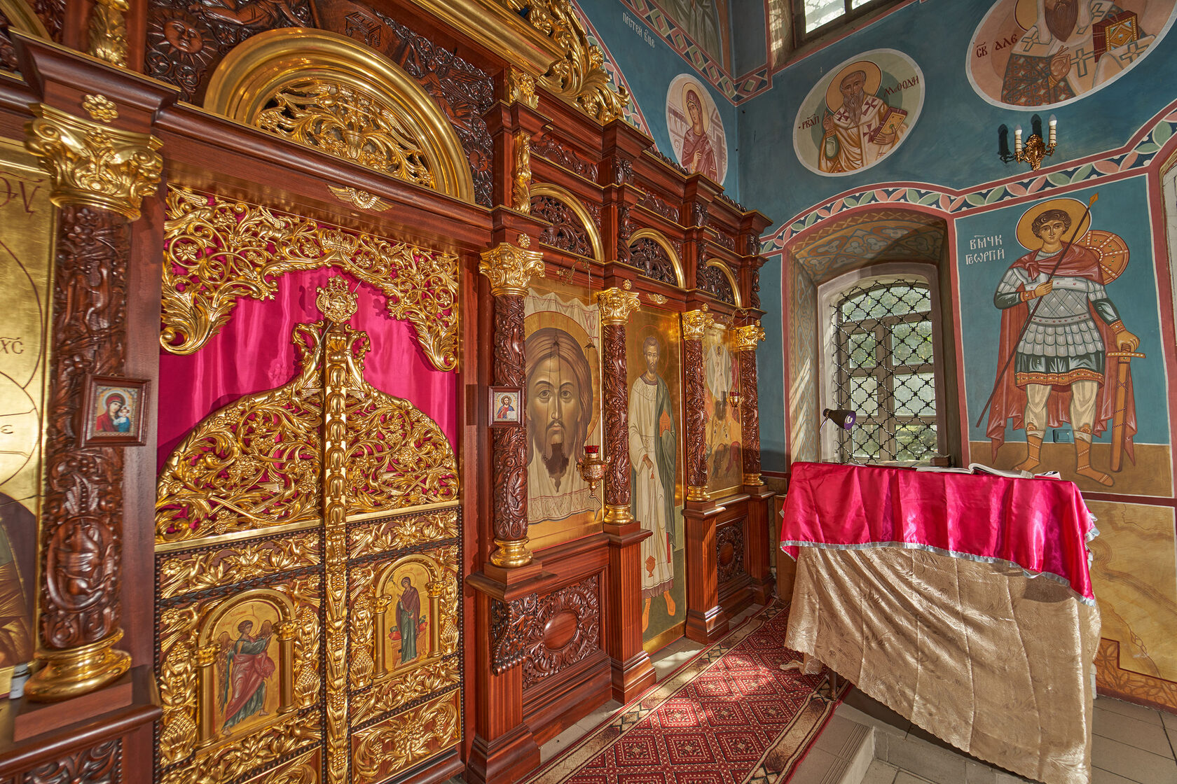 Реставрационные работы, предпринятые администрацией Рязанской области, не предполагали восстановление внутреннего убранства храма, по инициативе ИА «Белые воины» был спроектирован уникальный иконостас из ценных пород дерева. К престольному празднику храма – второму Спасу 2009 года иконостас был смонтирован и передан настоятелю о.Сергию. Иконостас украшает тонкая художественная ручная резьба.
