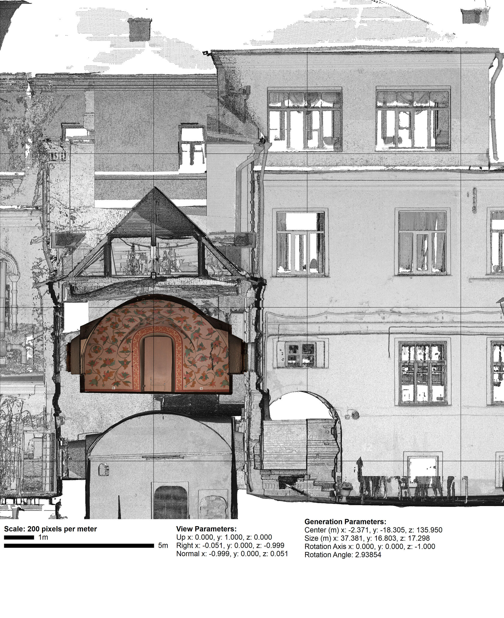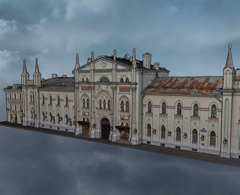 Фасад здания по Никольской улице был частично закрыт гирляндами, что затрудняло сбор данных. Однако благодаря тщательной работе нашей команды и использованию лазерных сканеров, мы смогли оцифровать фасад в идеальном состоянии, исключив влияние подвесных конструкций. Съёмка с разных ракурсов и обработка данных позволили получить точную и детализированную модель фасада без повреждений и искажений.
